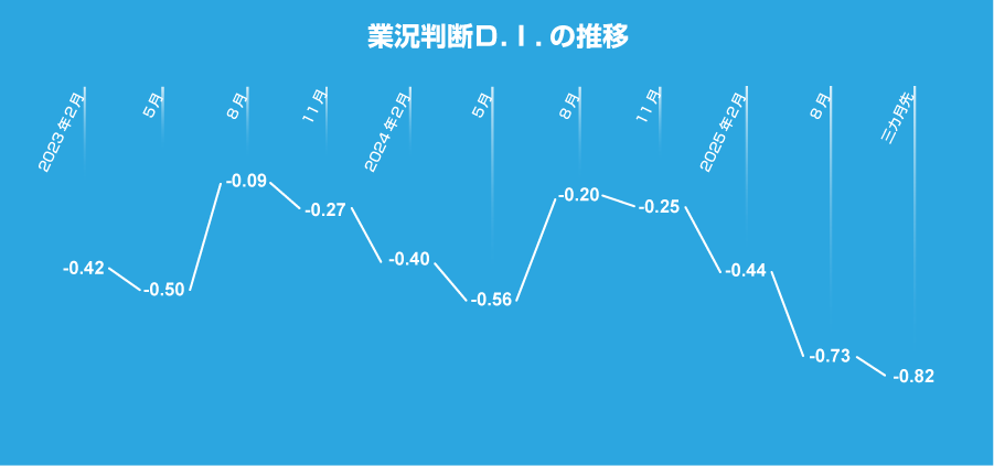3か月先の業況に関する判断DIについては、-0.82と前回( -0.33)から大幅に下落。
